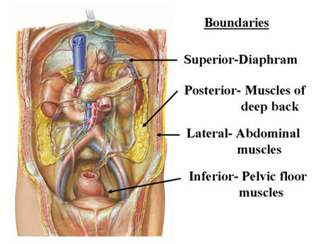 - Posterior Boundary: Formed by the posterior abdominal wall, which includes the lumbar vertebrae, psoas major, quadratus lumborum, and iliacus muscles.
