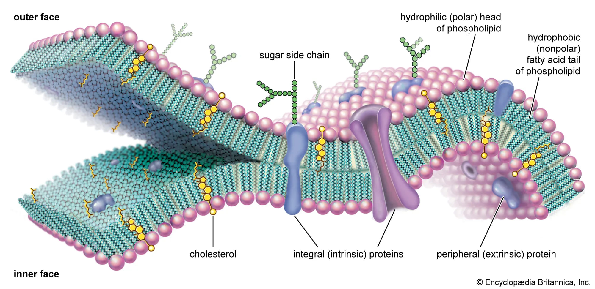 Cholesterol are also present, helping to maintain the membrane's fluidity and stability.The cell membrane performs several vital jobs: