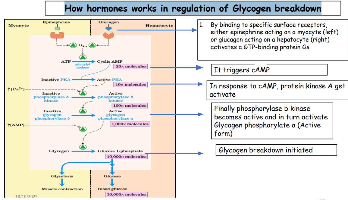 • Regulation: Liver glycogenolysis is highly regulated by hormones such as glucagon (released during low blood glucose) and epinephrine (released during stress).