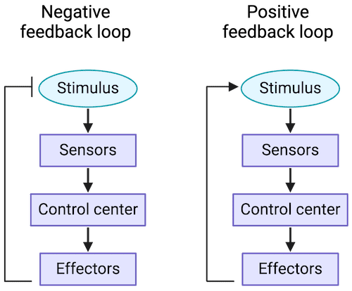 Mechanism: The output of the system enhances or exaggerates the original stimulus, driving the variable further away from the initial set point. This is often part of a process that needs to be completed quickly.
