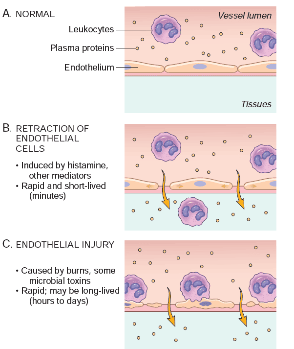 - Increased Permeability: Protein-rich fluid pours into the extravascular tissues.