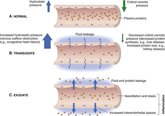 - Exudate: A fluid with high protein concentration, cellular debris, and high specific gravity (>1.020). Indicates an increase in vascular permeability.