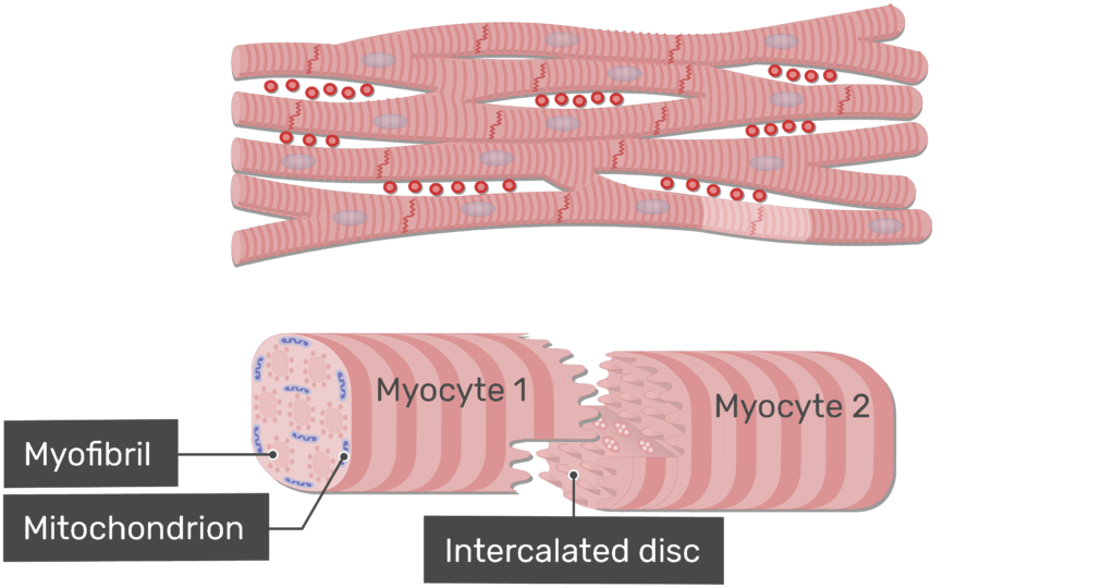 Cardiac muscle cells, or cardiomyocytes, are highly specialized cells with several unique features.
