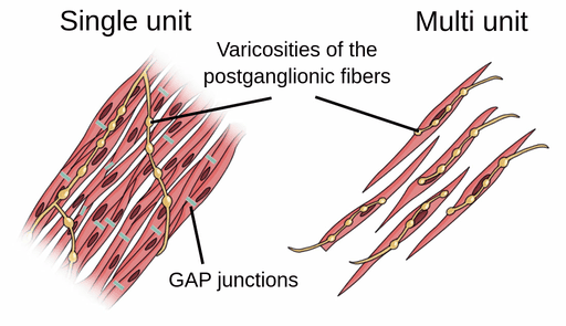 Consists of individual, structurally independent cells with few or no gap junctions. Each cell has its own nerve ending, allowing for fine, precise control. Found in large airways, large arteries, and the iris of the eye.