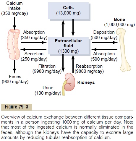 - Bones contain a large reservoir of calcium, a small portion of which is in a readily exchangeable form. This exchangeable calcium is in dynamic equilibrium with the ECF.