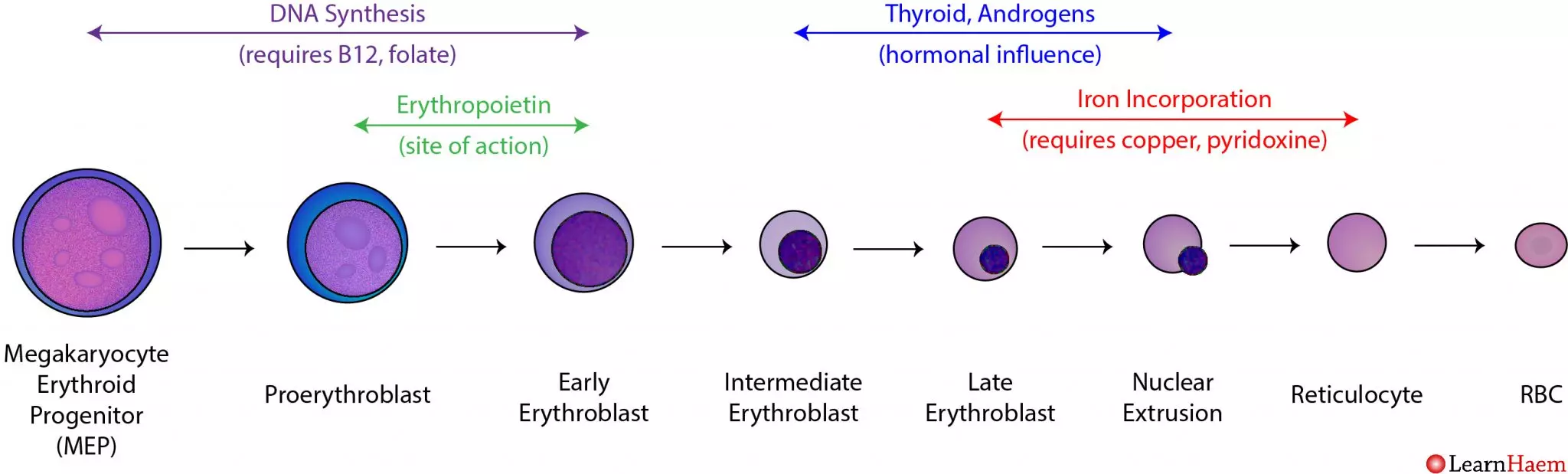 Stages of Erythropoiesis (from Hematopoietic Stem Cell to Mature RBC)