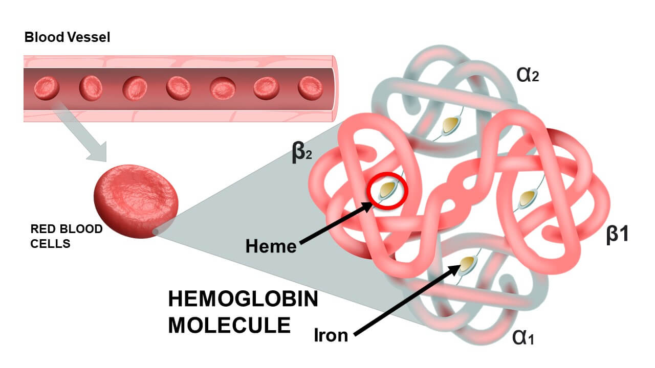 Important: Iron must be in the Ferrous (Fe2+) state. If oxidized to Ferric (Fe3+), it forms methemoglobin and cannot bind oxygen.